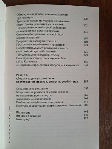 Мінусники - це вербальний та соціальний витвір радянської держави, яка через репресії, дискримінацію й контроль створювала спільноти «своїх» і «чужих», тавруючи останніх каральними методами та формуючи специфічну мову для їх позначення. У книжці йдеться про особливу категорію громадян «країни Рад», яких було визнано «соціально небезпечними» й покарано забороною селитися в низці місцевостей СРСР після примусового «видалення» з місць постійного проживання, а також відбуття покарання у системі ҐУЛАҐ. Дослідниці аналізують процес конструювання більшовицької концепції географічної ізоляції «нелояльних» і визначають логіку творення радянського простору як простору заборон. Режимність радянських територій аналізується не лише як прояв сталінської репресивної політики, а й як органічна частина функціонування тоталітарного механізму, перші оберти якого відбулися одночасно із захопленням влади більшовиками.