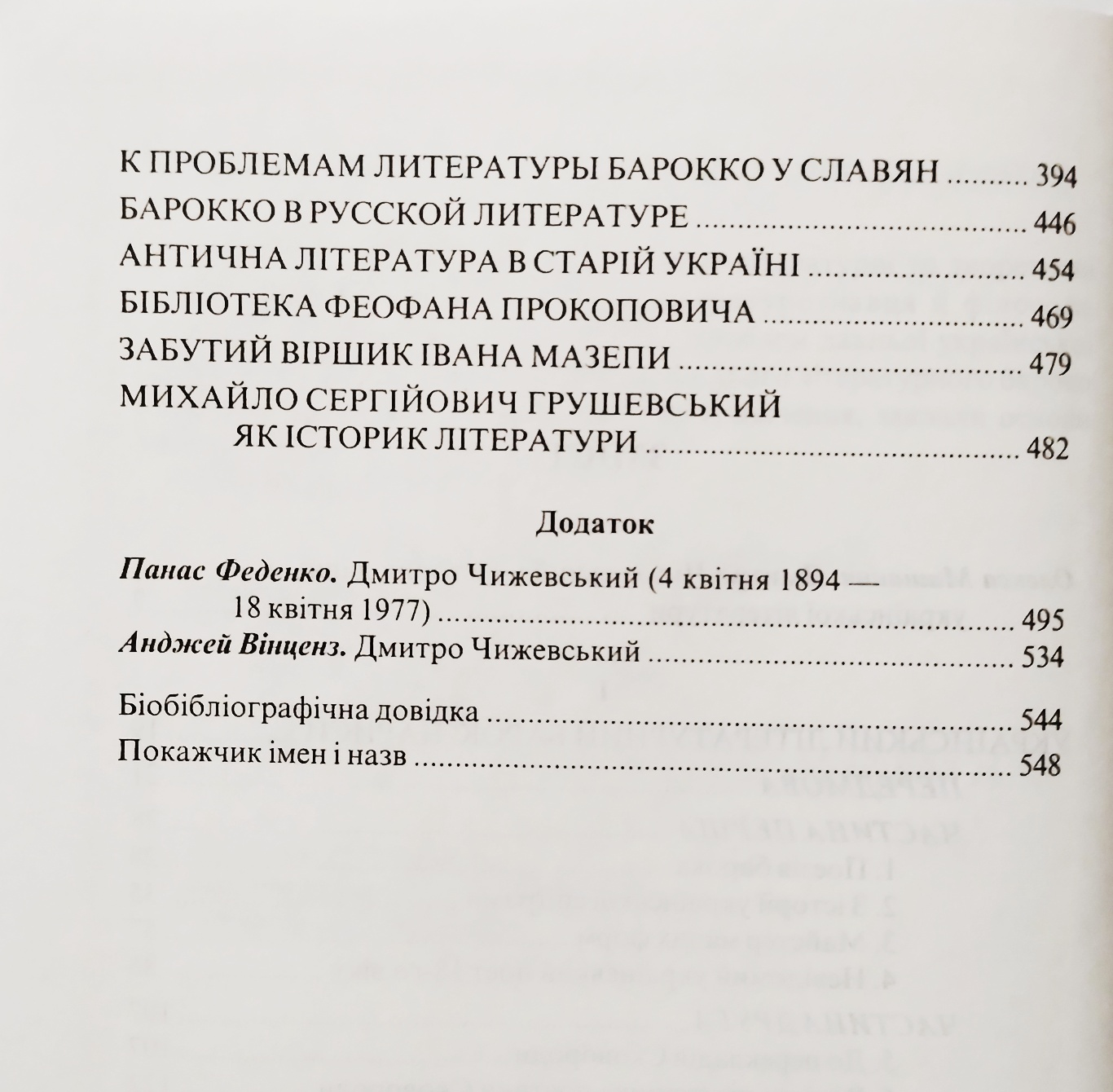 відомого вченого-славіста, літературознавця й філософа проф. Д. Чижевського (1894-1977) з проблем давньої української літератури. Дослідження